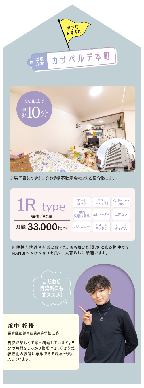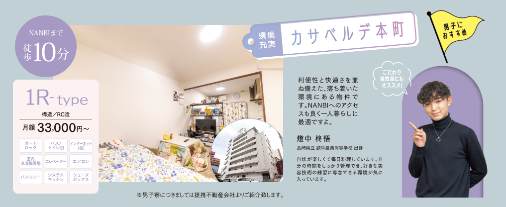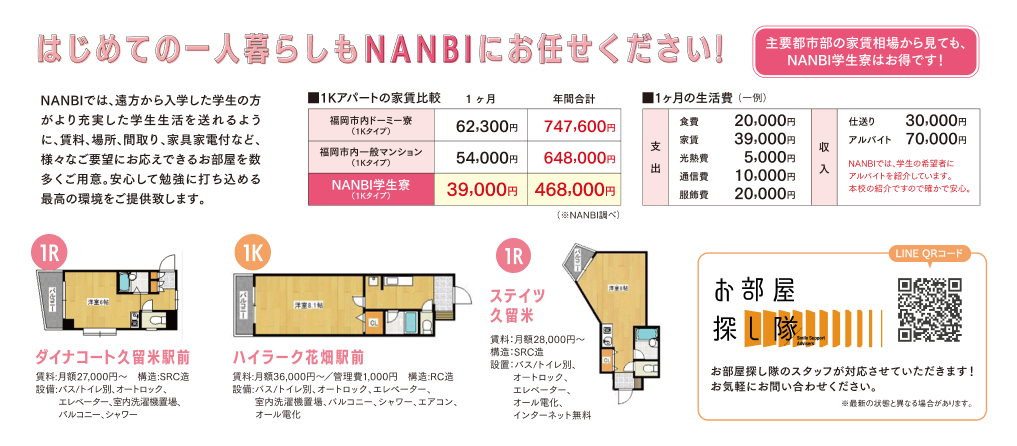 はじめての一人暮らしをサポートする学生寮・学生マンションを案内。家賃や設備、セキュリティ、通学条件等、様々な面からご要望に合う物件のご紹介が可能です。