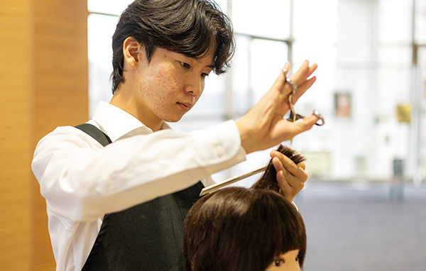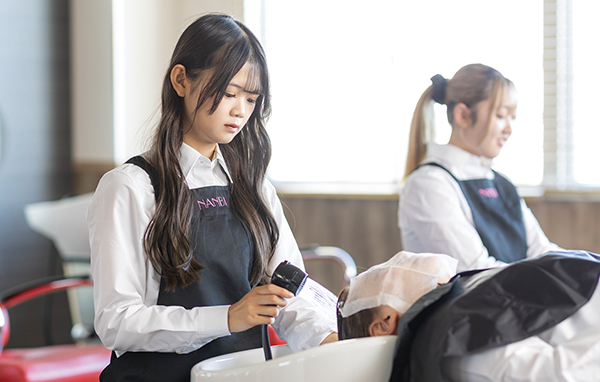 一般のお客様にサービスし、本物のお店と同じサロンワークを実習授業として日常的に体験することで、テクニックや接客マナーなどを身につけます。