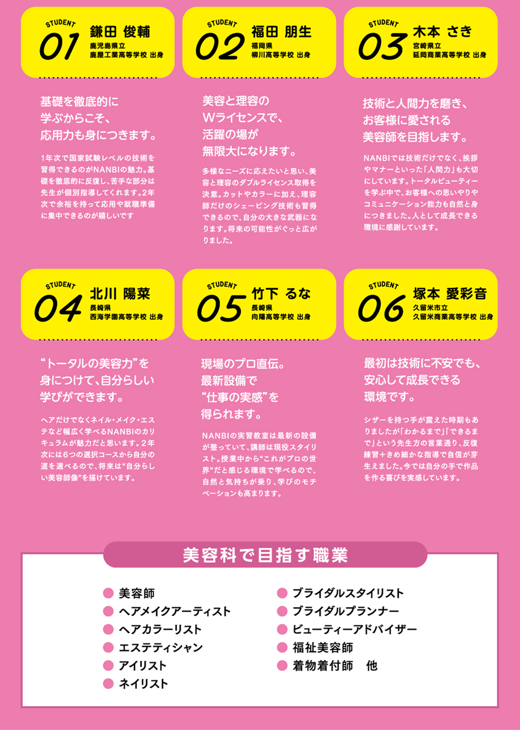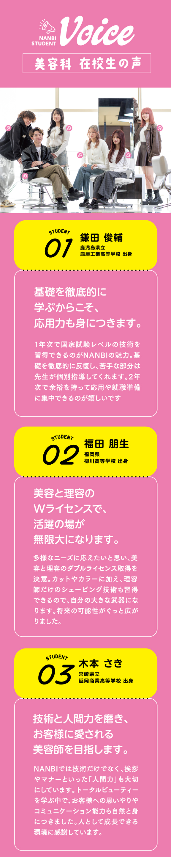 美容の技術や知識だけでなく一般教育やマナー、コミュニケーション能力を幅広く、