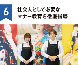 心を込めた接客と技術を提供できる人財の育成に力を入れています。プロの現場で必要な「礼儀」「接客マナー」を入学直後から指導します。