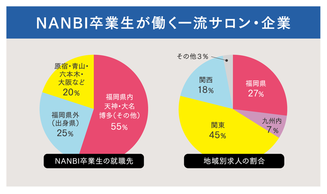就職先に優良なサロン・企業が多いのもNANBIの特徴です。