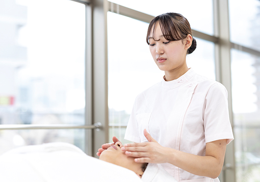 授業で身につけた商品知識やカウンセリング力を活かして、サロン実習で接客を体験。一般のお客様を相手に施術をおこない、自分の技術レベルを確認します。